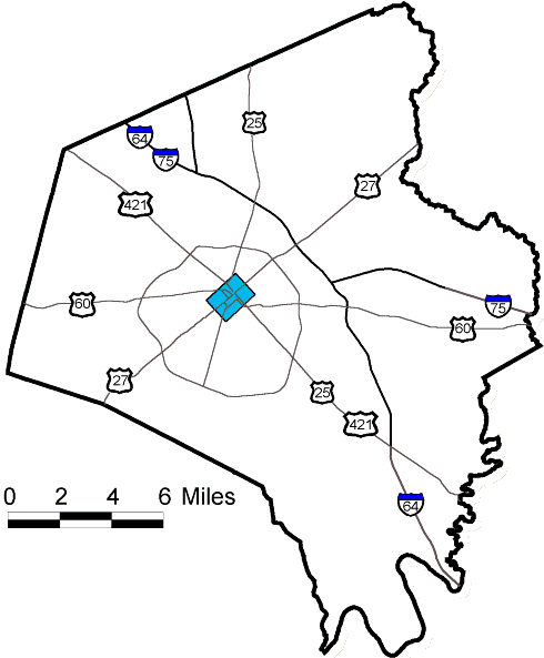 Fayette County and Lexington with major highways and interstates. The blue rectangle shows area of